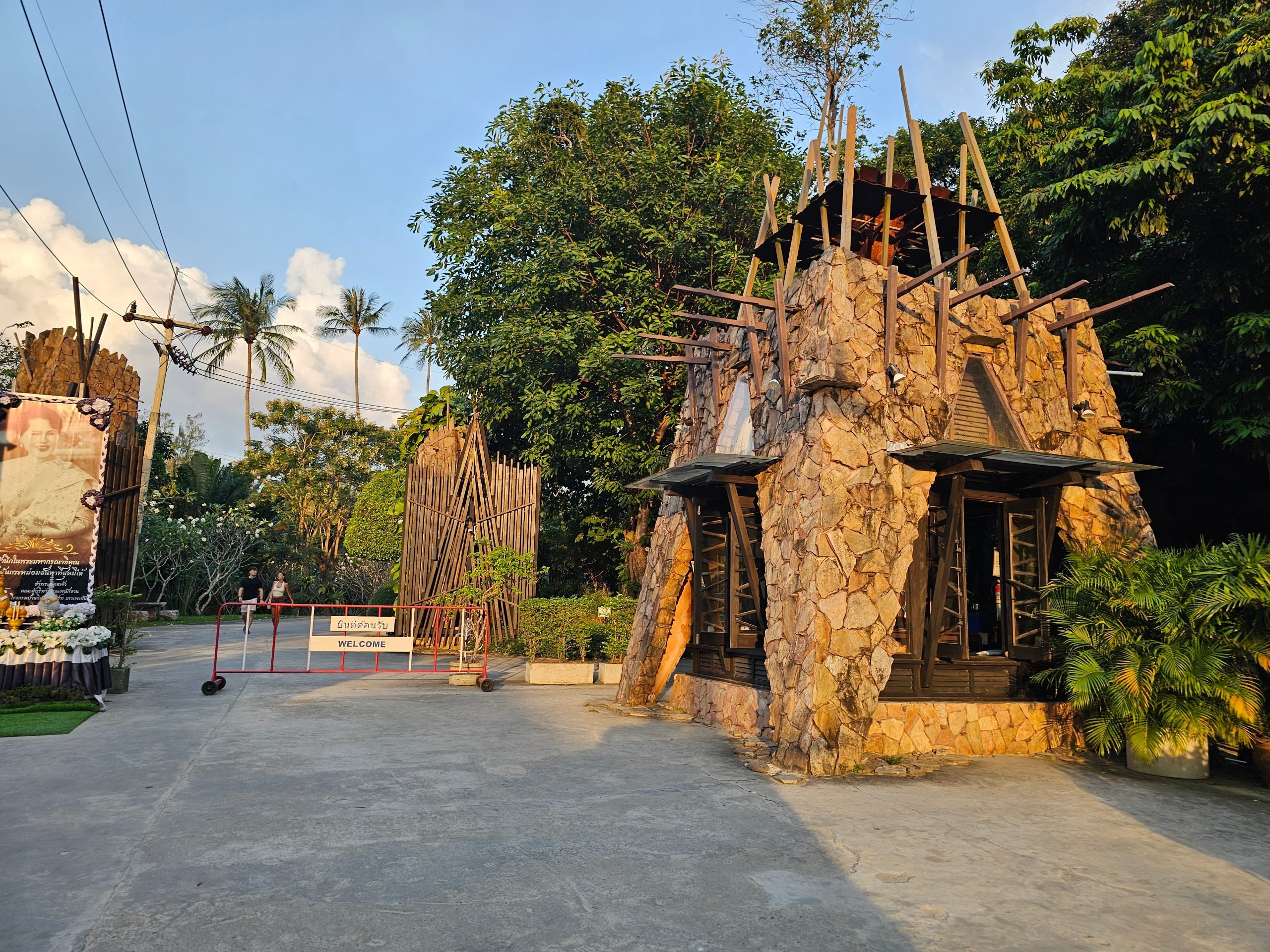 Les voitures peuvent se garer gratuitement près de la porte d'entrée. Vous pouvez prendre un scooter jusqu'à la réception, qui se trouve à peu près au milieu de toute la zone.