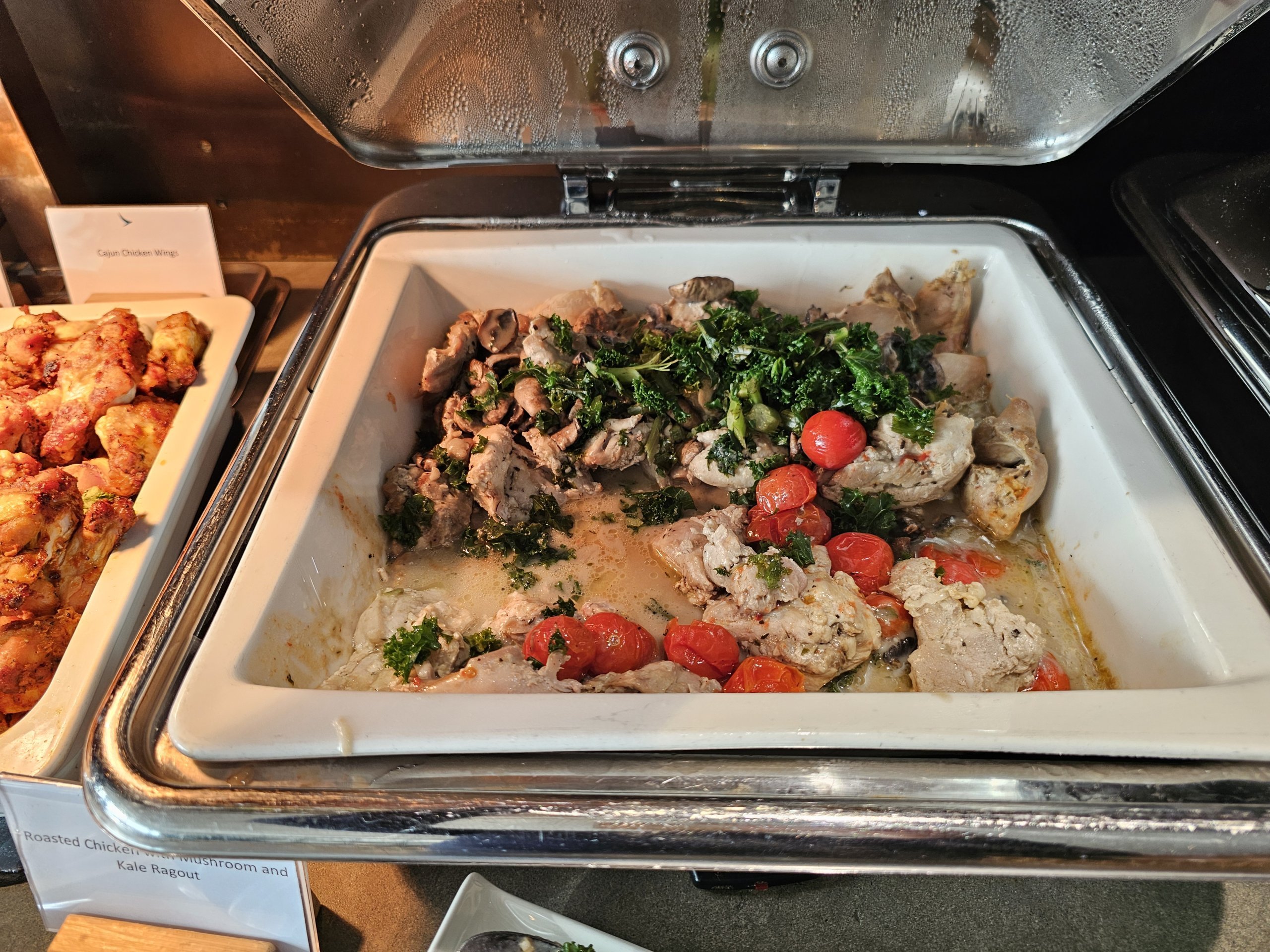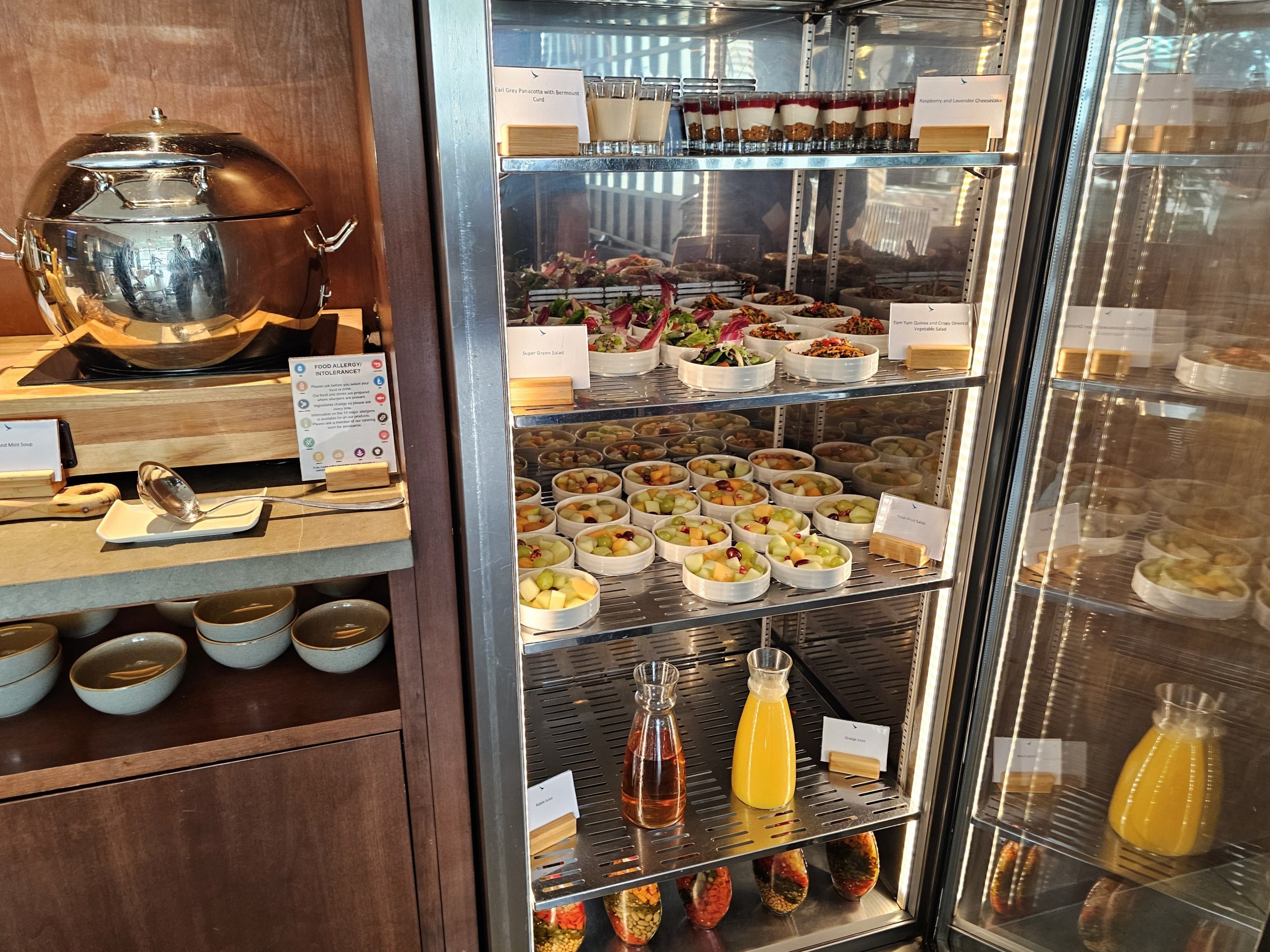 Dans une autre partie du salon, vous trouverez le buffet classique - il y a toujours un choix de 4 types de plats chauds. Nous n'étions pas dans le salon avant l'après-midi, je ne sais donc pas quelle est l'offre de petit-déjeuner.