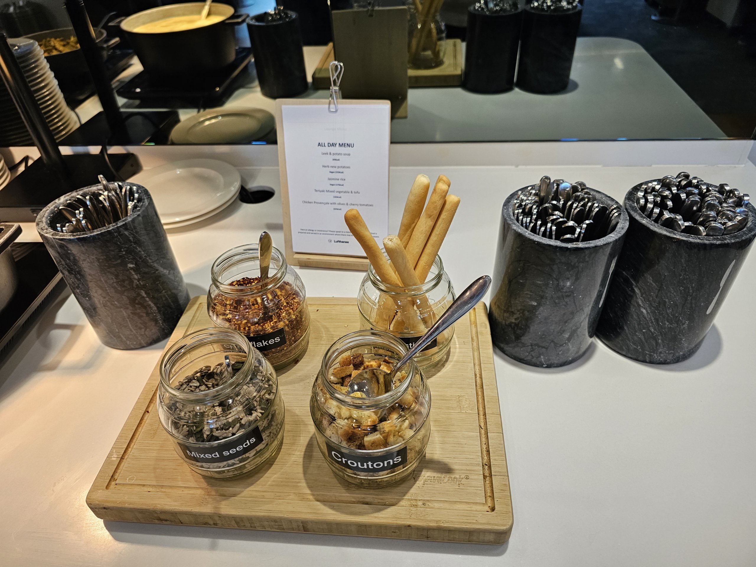 Bien que de nombreux aéroports proposent une meilleure offre de nourriture et de boissons dans le salon Senator, dans le salon Lufthansa de Londres, la nourriture et les boissons sont identiques dans les salons Business et Senator.