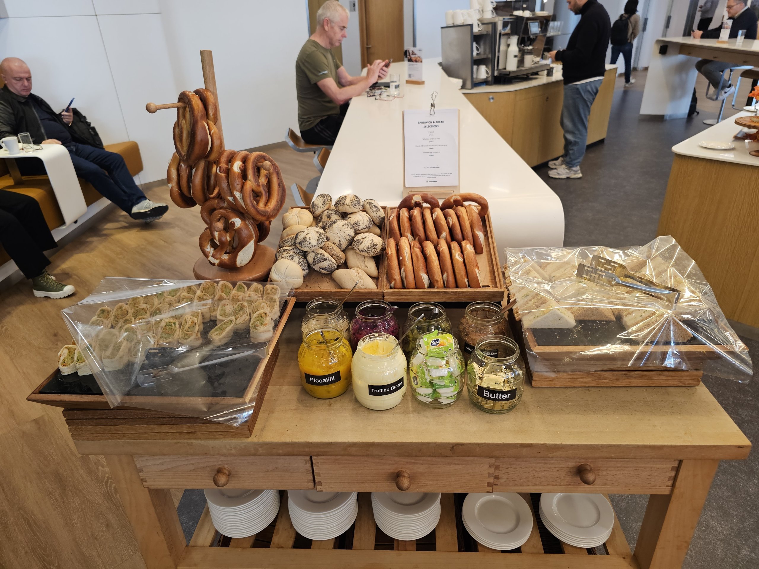 Au comptoir suivant, vous pouvez prendre des bretzels ou des bagels avec du bon beurre salé.